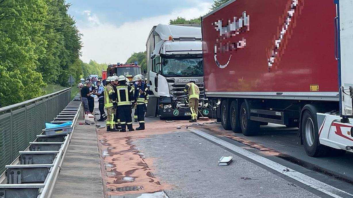 Update: A44 nach Unfall mit vier Lkw wieder frei
