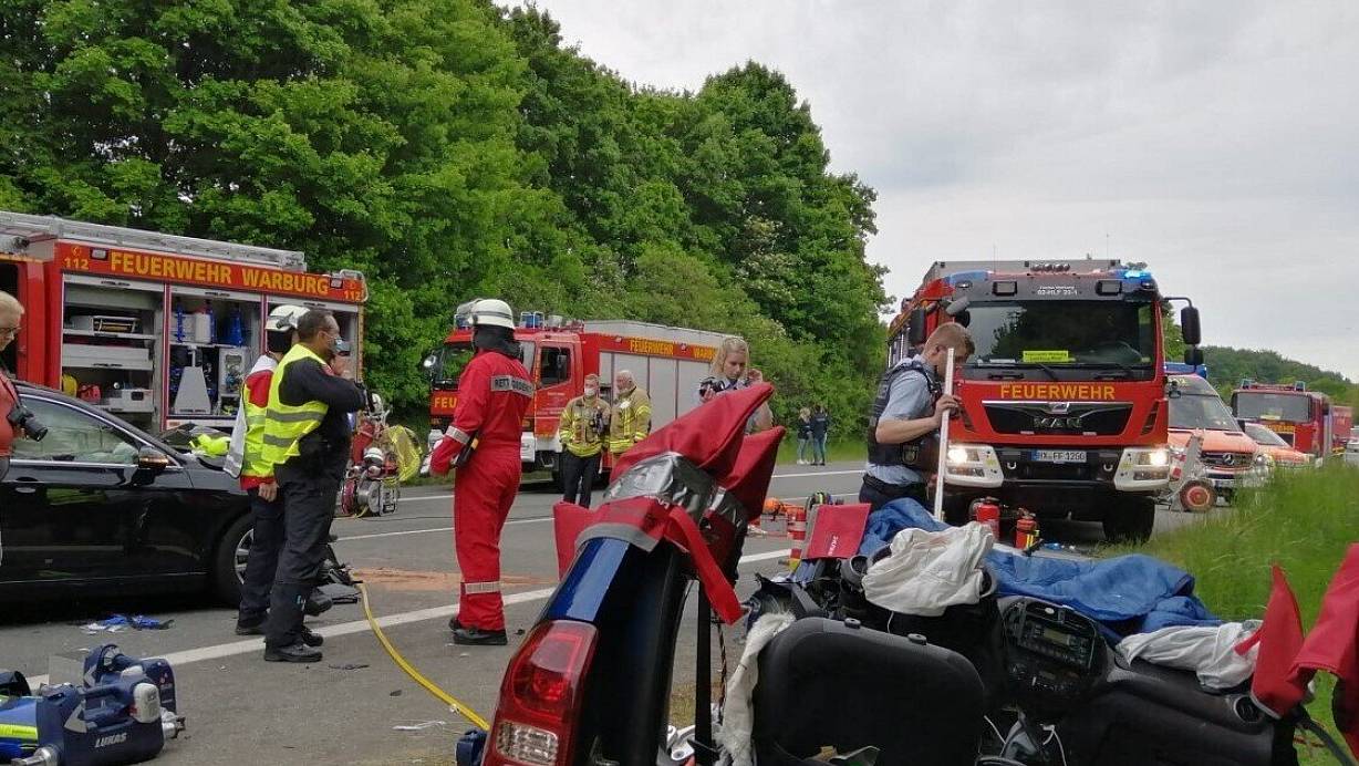 Bei dem Unfall zwischen Willebadessen und Scherfede kommt ein Hund ums Leben. Ein Großaufgebot an Rettungshelfern ist im Einsatz.