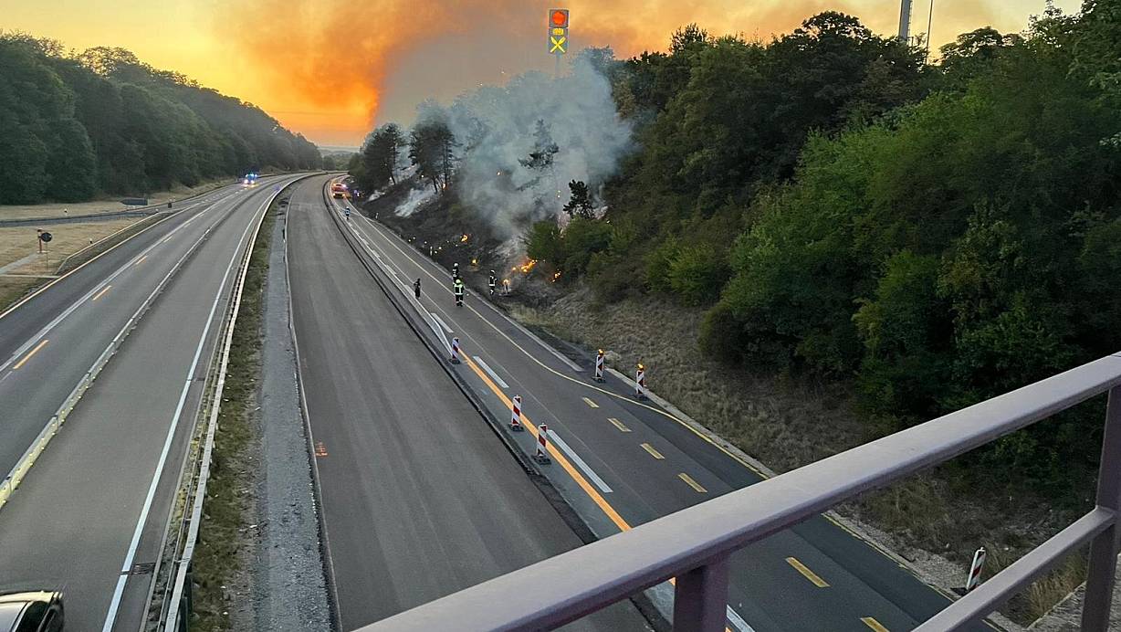 Chaos auf der A 44: Tausende Quadratmeter Böschung und Bäume brennen