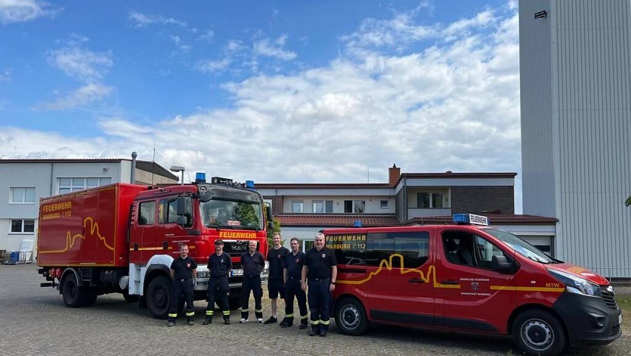 Die sechs Warburger Feuerwehrmänner helfen in Brandenburg mit Material und Logistik aus der Hansestadt. | © FFW Warburg