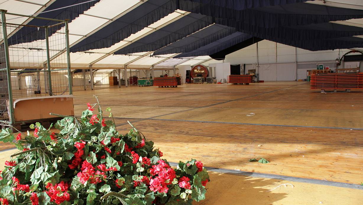 Im Festzelt der 73. Warburger Oktoberwoche wird aufgeräumt. | © Dieter Scholz
