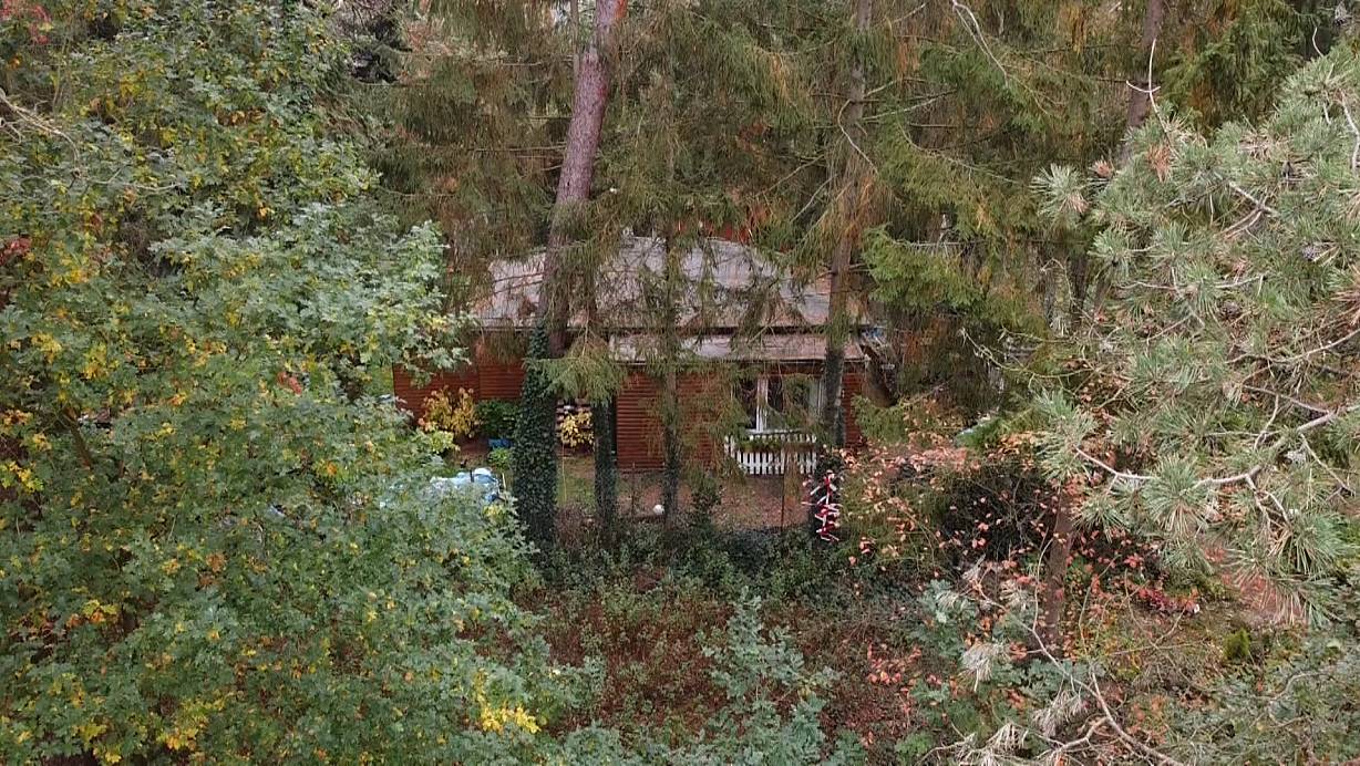 Ein Blick auf eine Laube am Würmsee in der Region Hannover. Absperrband der Polizei hängt an einem Zaun. | © dpa