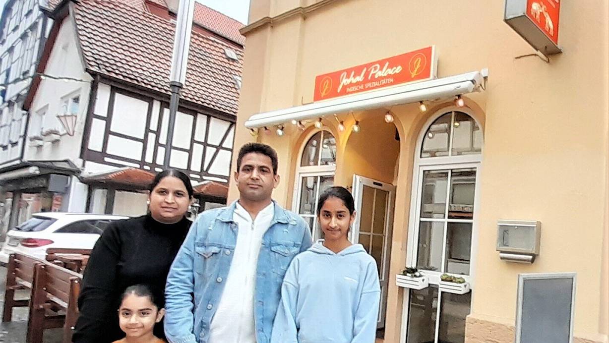 Ein starkes Familienteam sind Amanpreet Kaur Johal, ihr Mann Sonpreet Singh Johal und die beiden Kinder Harnoorpreet (12) und Sukhmani (5), ihr vor dem indischen Imbiss-Restaurant Johal Palace an der Marktstraße in Warburg. | © Simone Flörke