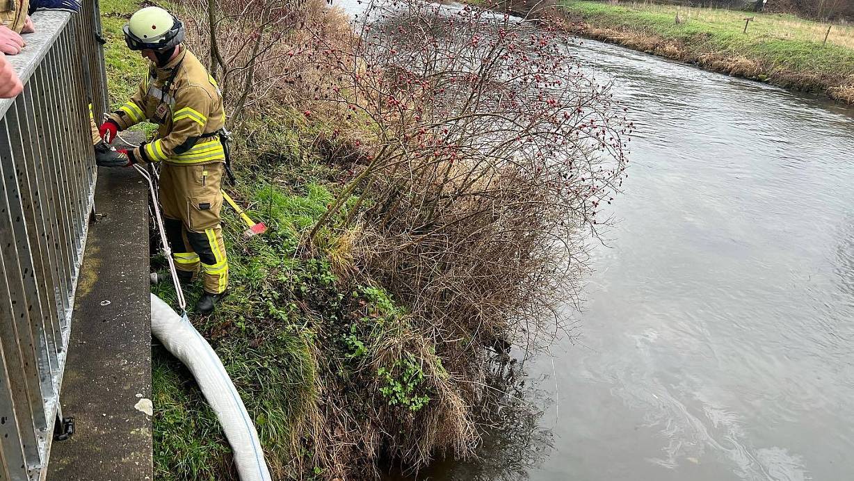 Wegen der Gewässerverschmutzung hat die Freiwillige Feuerwehr eine Ölsperre eingerichtet. | © FFW Warburg