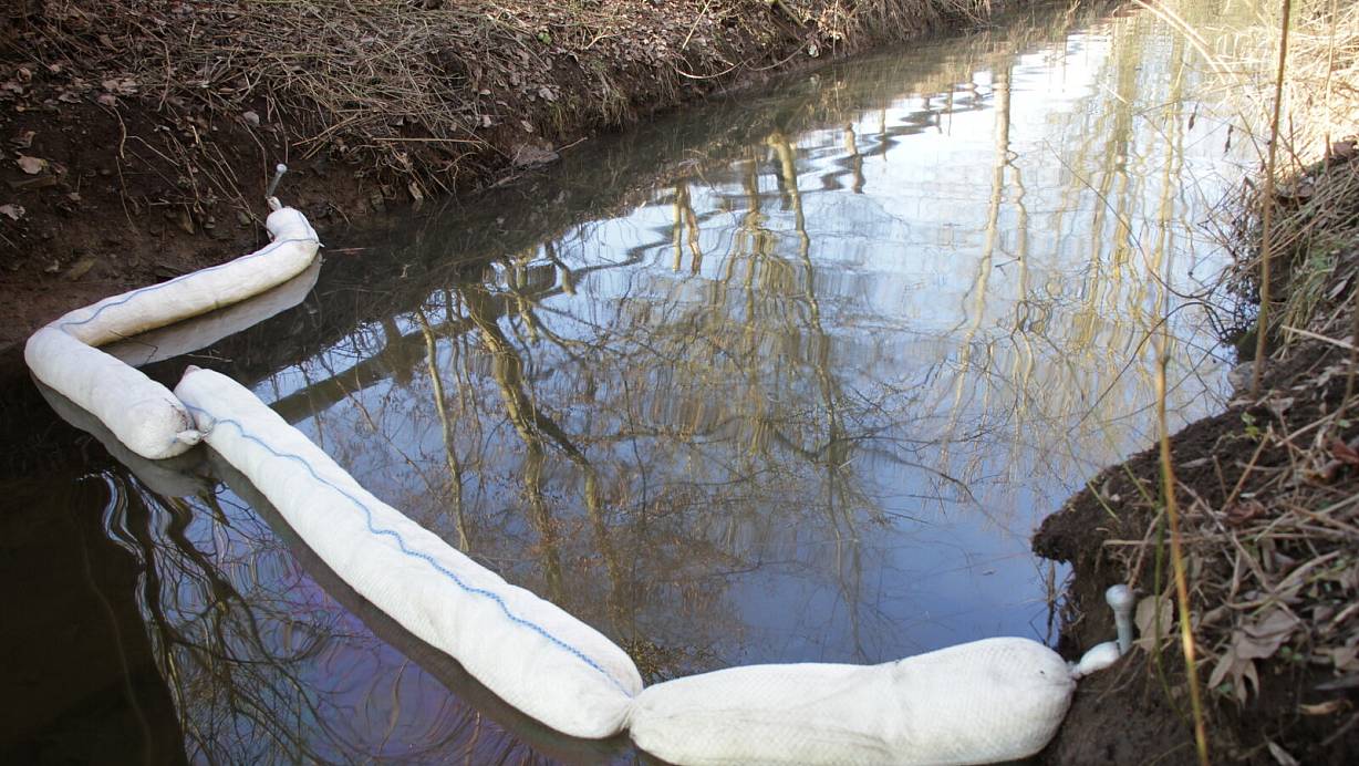 Eine Ölsperre quer über den Siekbach kurz vor der Mündung in die Diemel hält die ölige Substanz auf. | © Dieter Scholz