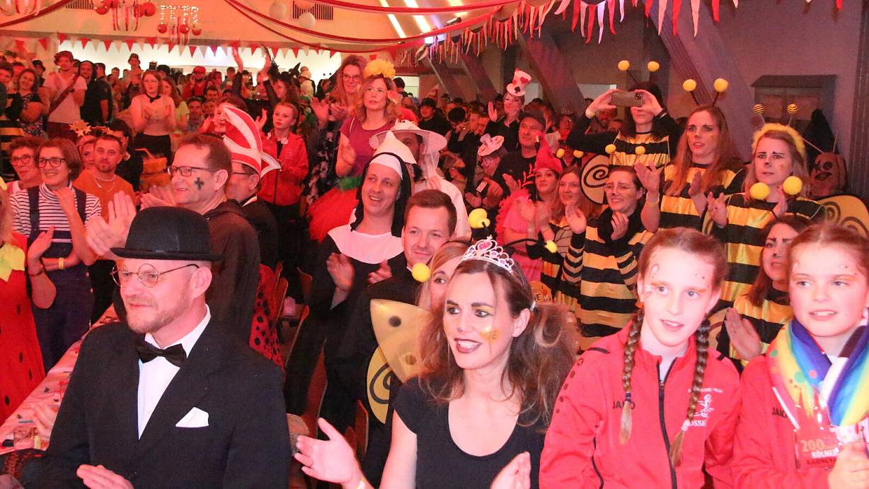Im Saal in Ossendorf herrscht eine tolle Stimmung im Publikum, ebenfalls überwiegend bunt kostümiert. | © Burkhard Battran