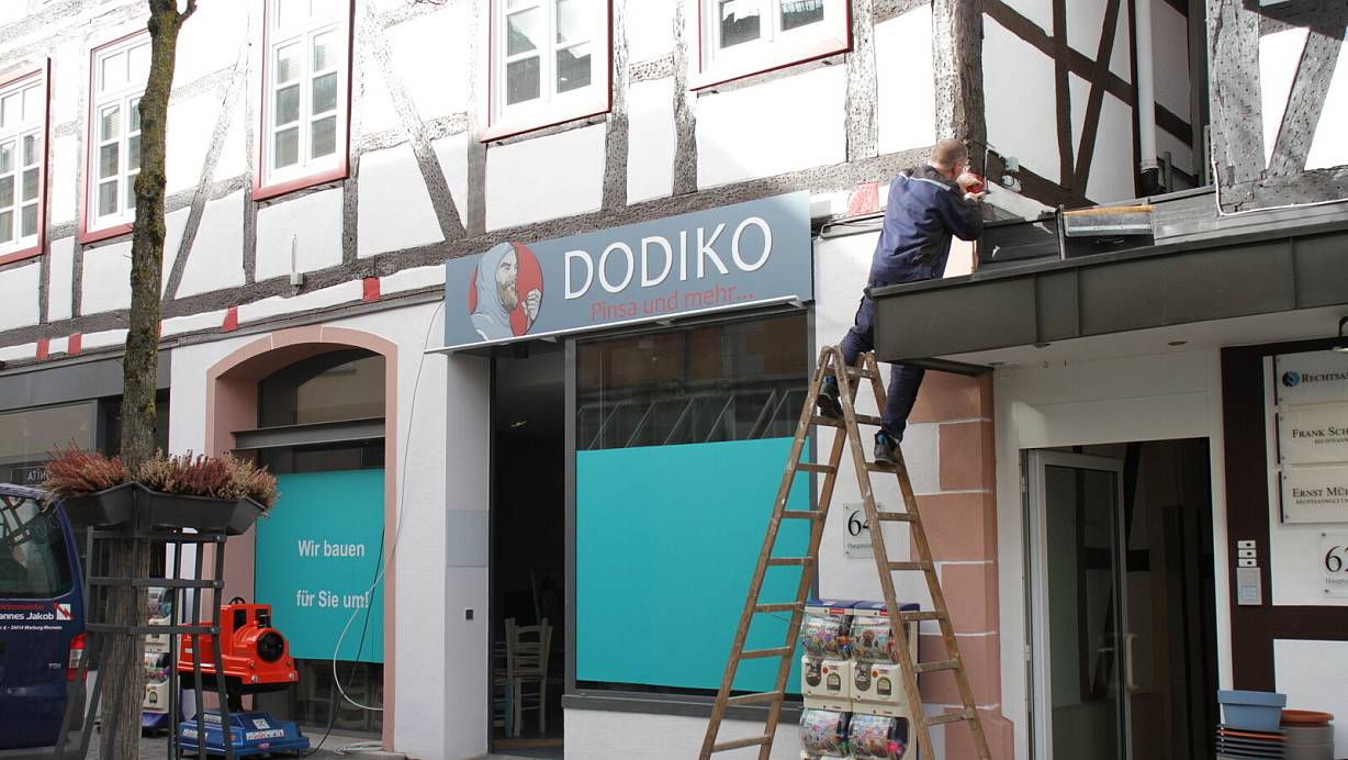 Schild und Logo über dem Eingang haben die Bistro-Betreiber selbst entworfen. Es erinnert an den Grafen Dodiko, dem Warburger Burgherrn aus dem 11. Jahrhundert. | © Dieter Scholz