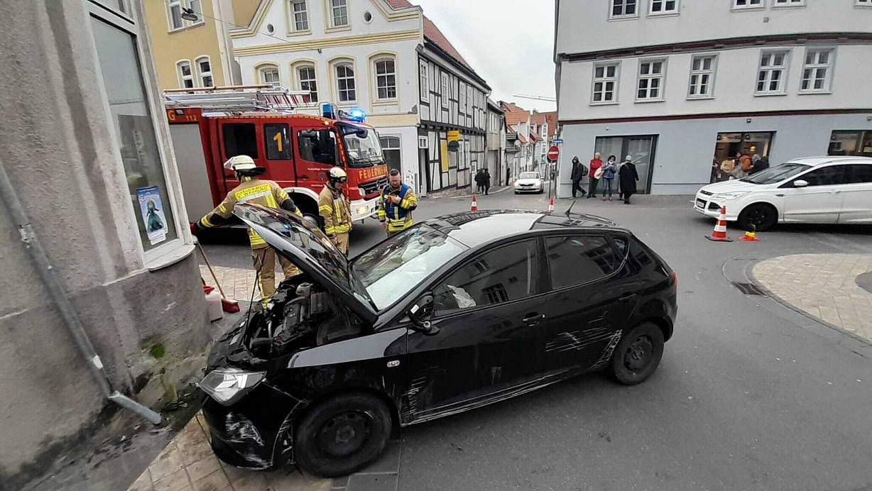 Warburg. Ein Unfall hat sich am späten Freitagnachmittag in Warburg ereignet. Ein Kleinwagen der Marke Seat Ibiza krachte an der Hauptstraße, Ecke Paderborner Tor/Josef-Wirmer-Straße, in eine Hauswand. Der 37-jährige Fahrer wurde verletzt.