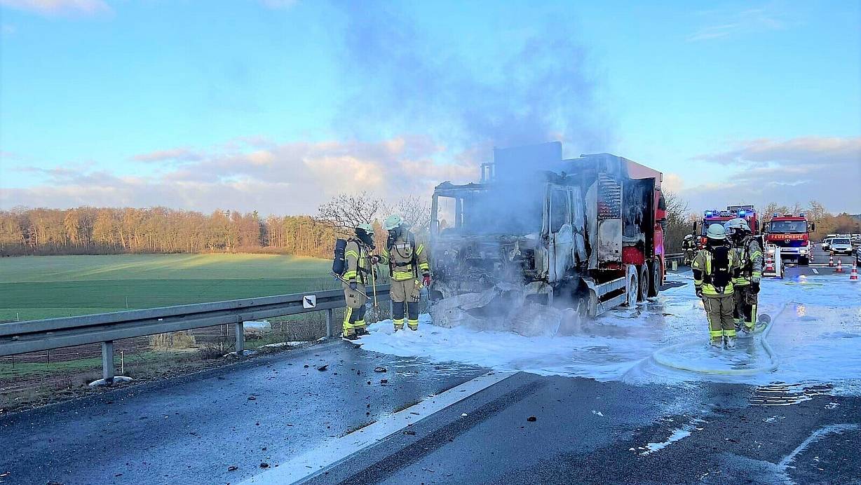 250.000 Euro Schaden nach Lkw-Brand auf der A44 bei Warburg