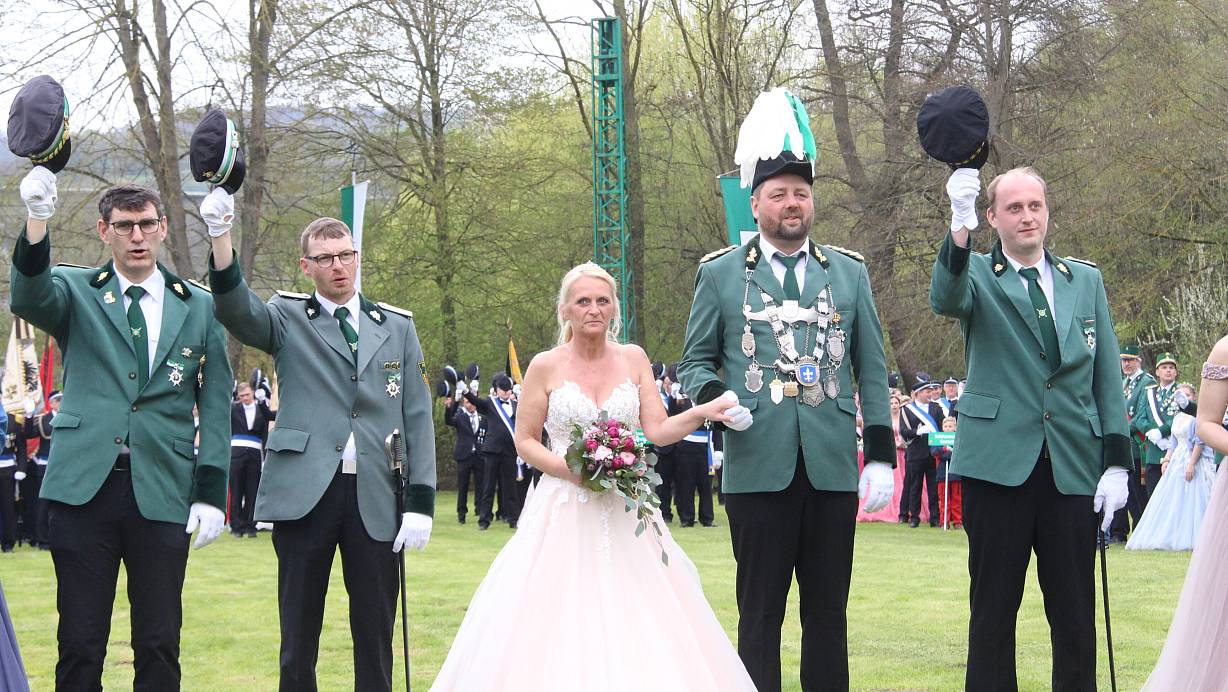 Das Scherfeder Königspaar Gisela Rodewald und Jens Winter steht im Mittelpunkt des Stadtschützenfests. Rund 1.000 Teilnehmer sind beim Umzug dabei.