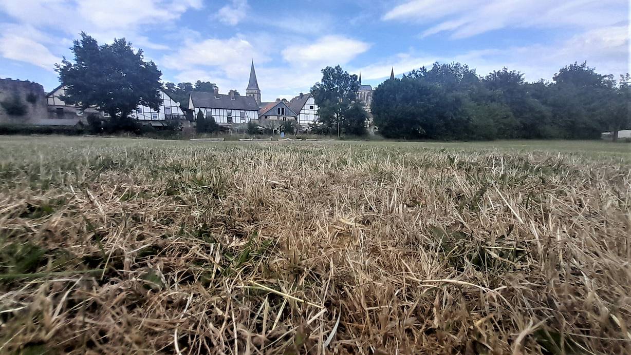 Durch die große Trockenheit seit Mai ist das Gras vielerorts – wie hier in der Warburger Altstadt – schon trocken, braun und verdorrt. | © Simone Flörke