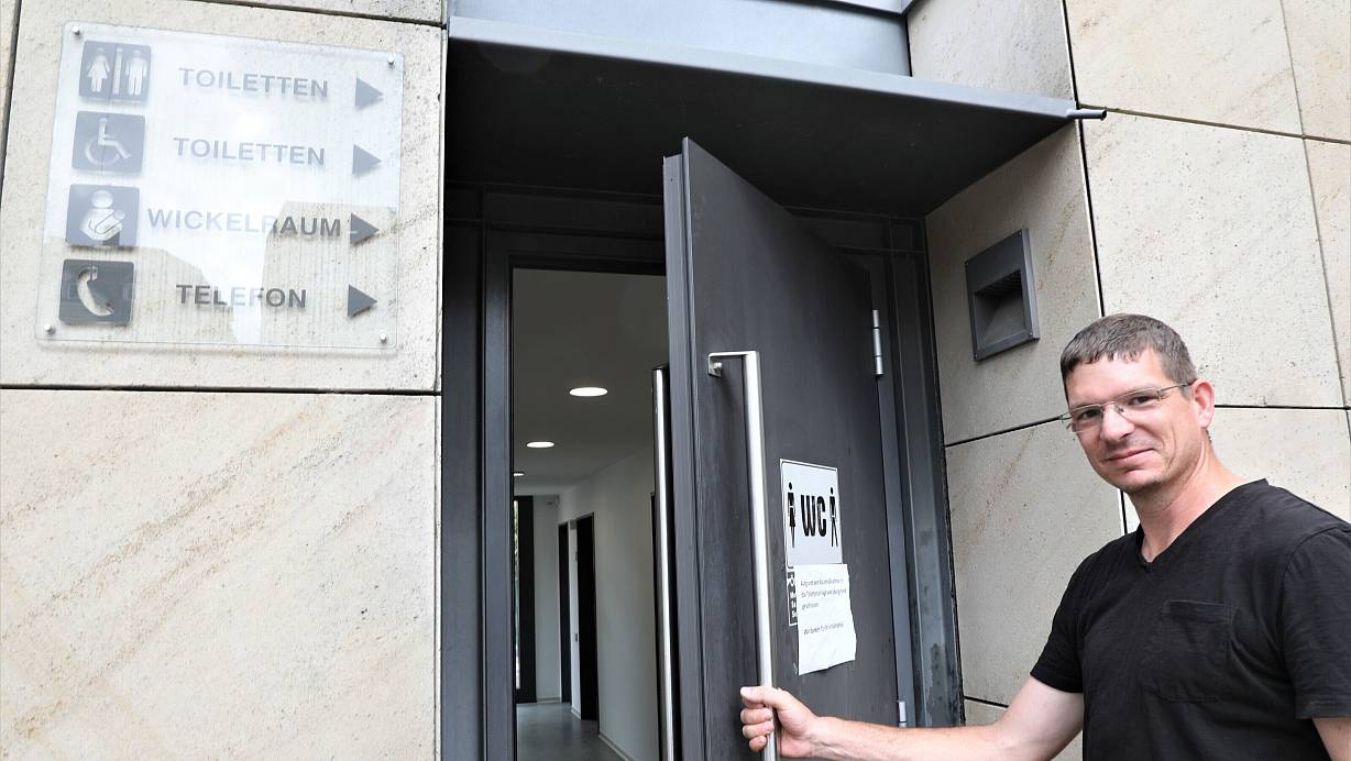 Die öffentliche Toilette ist bis voraussichtlich kommende Woche geschlossen, Florian Stieneke erklärt, warum dort Bauarbeiten nötig waren und sind. | © Simone Flörke