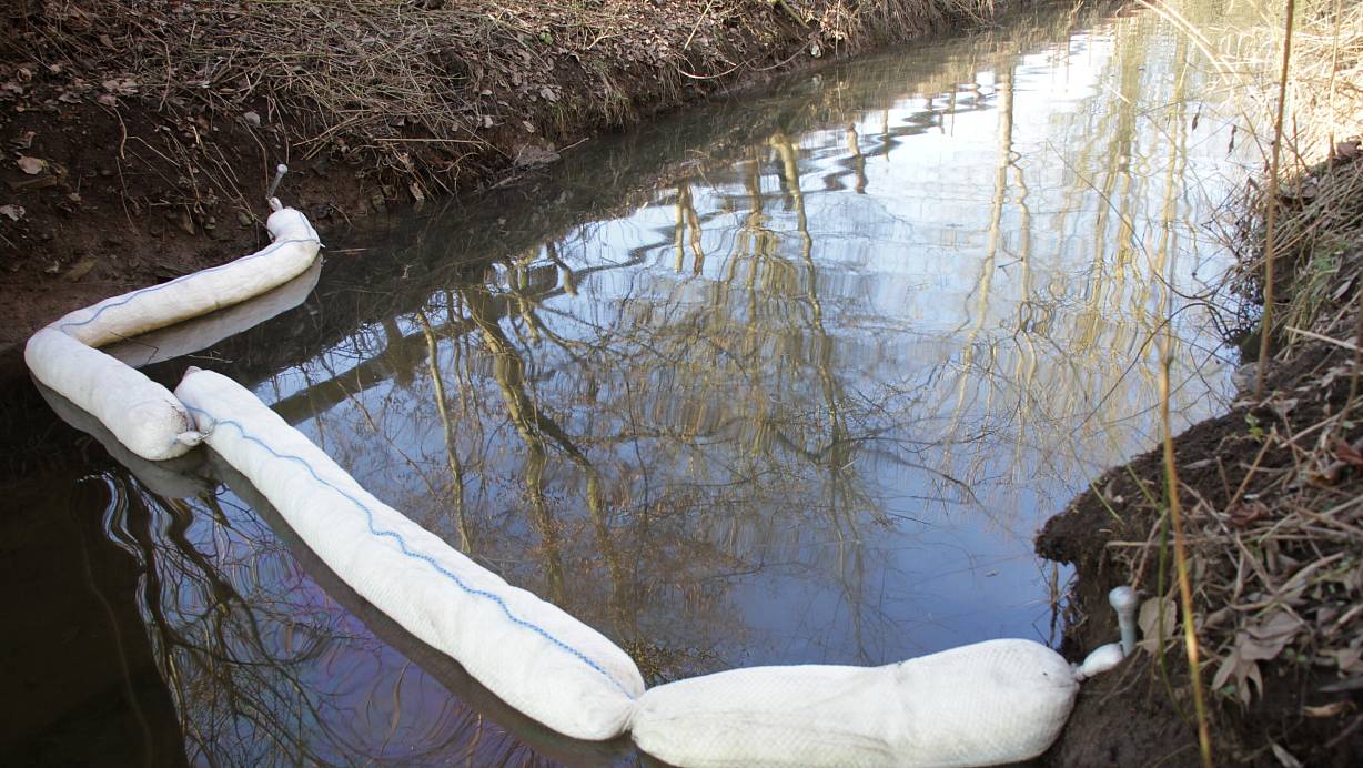 Zuletzt im Februar hatte die Feuerwehr eine Ölsperre quer über den Siekbach kurz vor der Mündung in die Diemel gelegt. | © FFW Warburg