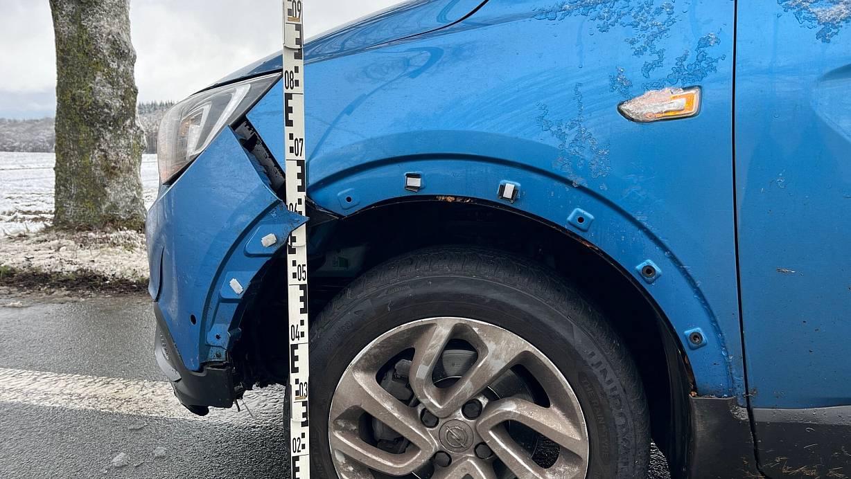 Das Verkehrskommissariat interessiert nun, woher die sichtbaren Unfallspuren stammen: Die vordere Stoßstange war beschädigt, die Plastikverkleidung des vorderen linken Radkastens fehlte, der linke Vorderreifen war platt.