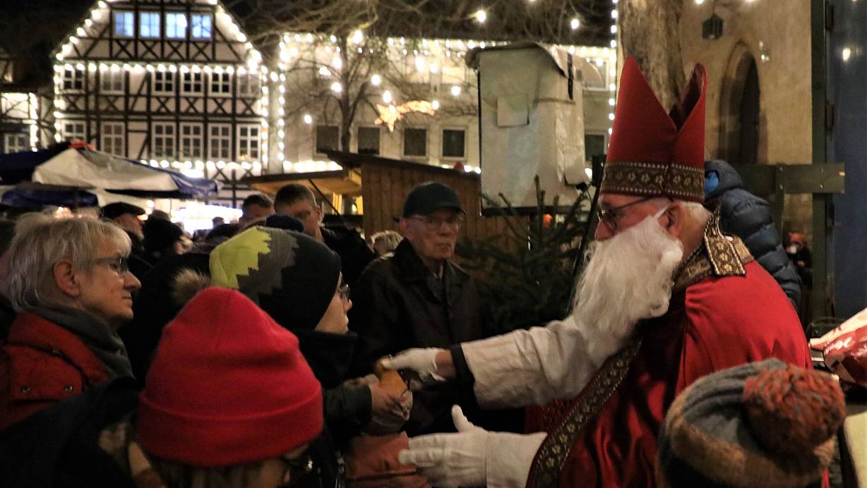 „Mein Gott, Ihr seid ja viele“: Das sagte der Nikolaus zur Begrüßung und war hocherfreut über die sangesfreudigen Gäste. Dafür gab’s Leckeres als Dank. | © Simone Flörke
