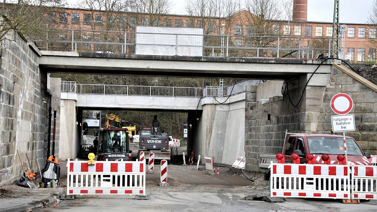 Wegen der Restarbeiten an der Eisenbahnüberführung bleibt die Straße noch gesperrt. Doch es gibt Licht am Ende des Tunnels.