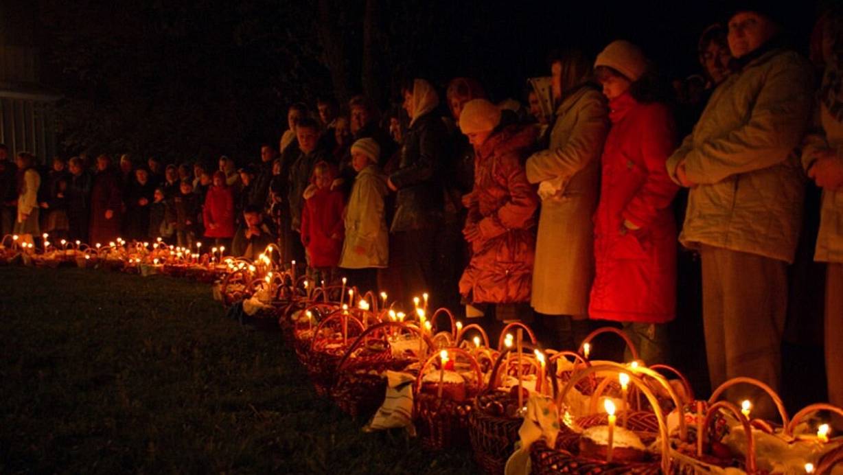 Die Osterkörbe mit Eiern, Osterkuchen und anderen Speisen werden Ostersamstag nach Mitternacht gesegnet. | © Privat