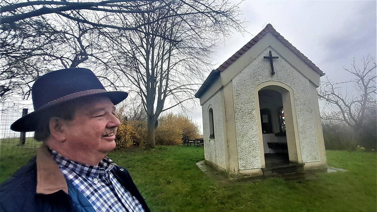 Mennes Ortsvorsteher Robert Schmidt auf dem Papenheimer Feld vor den Toren Warburgs an der Jakobuskapelle. | © Simone Flörke