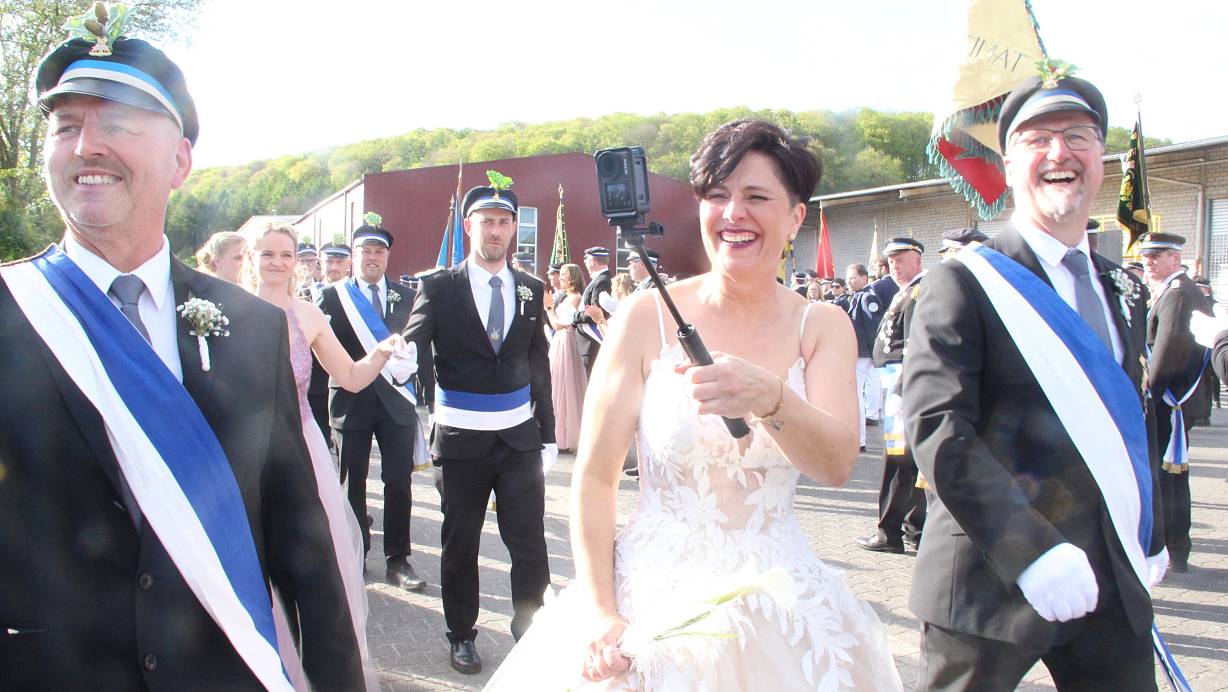 Nach seiner Rauchgasvergiftung war Stadtschützenkönig Mario Vahle noch nicht wieder hergestellt.  Königin Biggi Vahle avanciert daher zur Dashcam-Queen, die jeden Augenblick festhält.