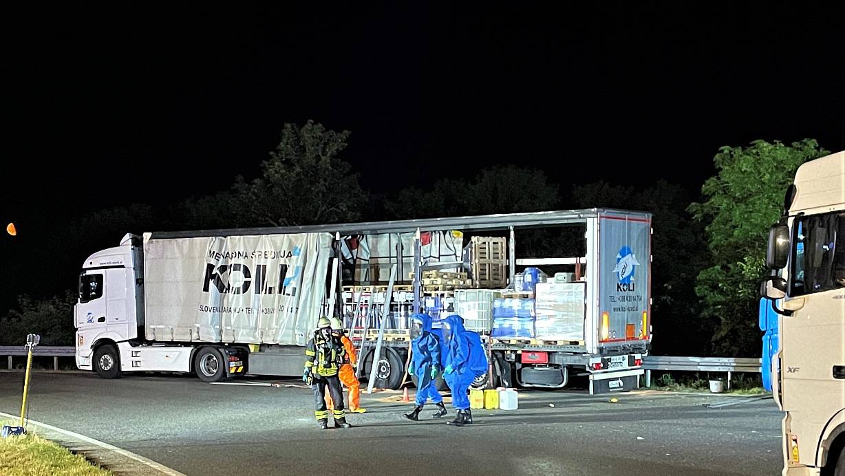 Am späten Donnerstagabend wurde ein Leck in einem Gefahrgut-Lkw an der Tankstelle am Rasthof Bühleck entdeckt. Das zog einen Großeinsatz nach sich, der sich aufwendiger gestaltete als angenommen.