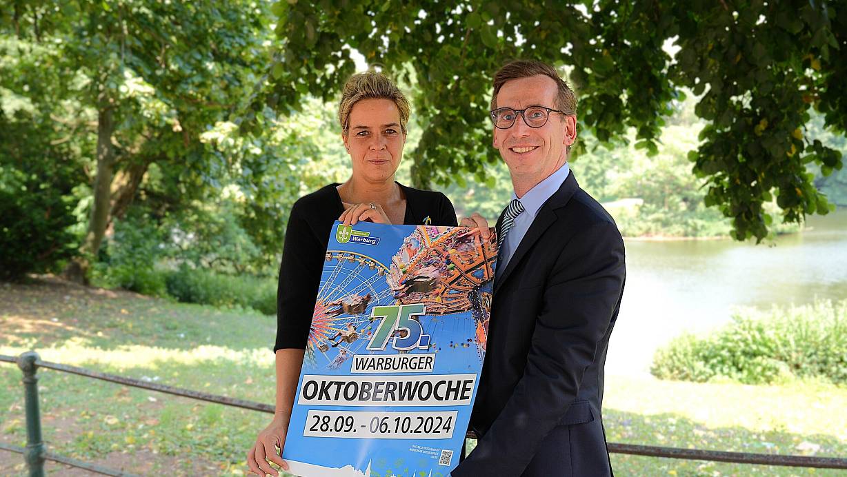 Warburg. Beim Organisatoren-Team der Oktoberwoche dreht sich schon Monate vor den Festtagen alles um die Planungen und Vorbereitungen. Vom 28. September bis 6. Oktober wird in der Hansestadt gefeiert – und das zum 75. Mal. „Wir sind stolz, dass wir für die 75. Warburger Oktoberwoche Mona Neubaur als Schirmfrau gewinnen konnten“, freut sich Bürgermeister Tobias Scherf über die Zusage der stellvertretenden Ministerpräsidentin. Der Bürgermeister hatte sie im Vorjahr gebeten, die Schirmherrschaft zu übernehmen, da die Oktoberwoche eine große wirtschaftliche Bedeutung für die Region habe.
