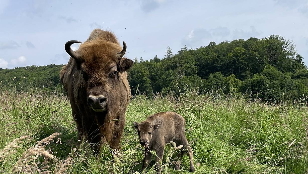 „Einstein“ heißt das Bullen-Kalb von Wisent-Mama „Eila“. Auf den Namen tauften ihn am Geburtstag die Warburger Landfrauen bei ihrem Ausflug. | © Jan Preller