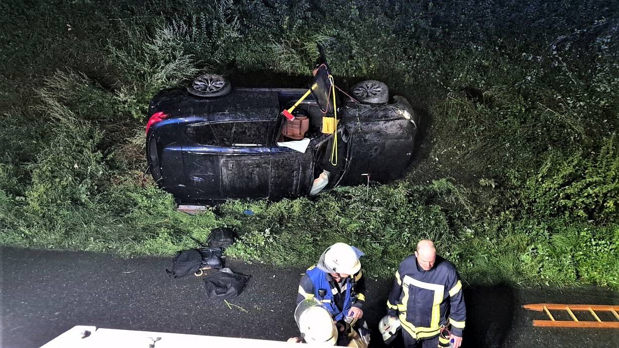 Gegen 21.30 Uhr verunglückte nach Polizeiangaben ein BMW zwischen Marsberg und Lichtenau aufgrund des starken Regens. Das Fahrzeug mit zwei Insassen aus der Schweiz überschlug sich auf den Wasserflächen und blieb im Graben an der Autobahn liegen, von wo er geborgen werden musste. Fahrer und Beifahrer kamen leicht verletzt ins Krankenhaus.