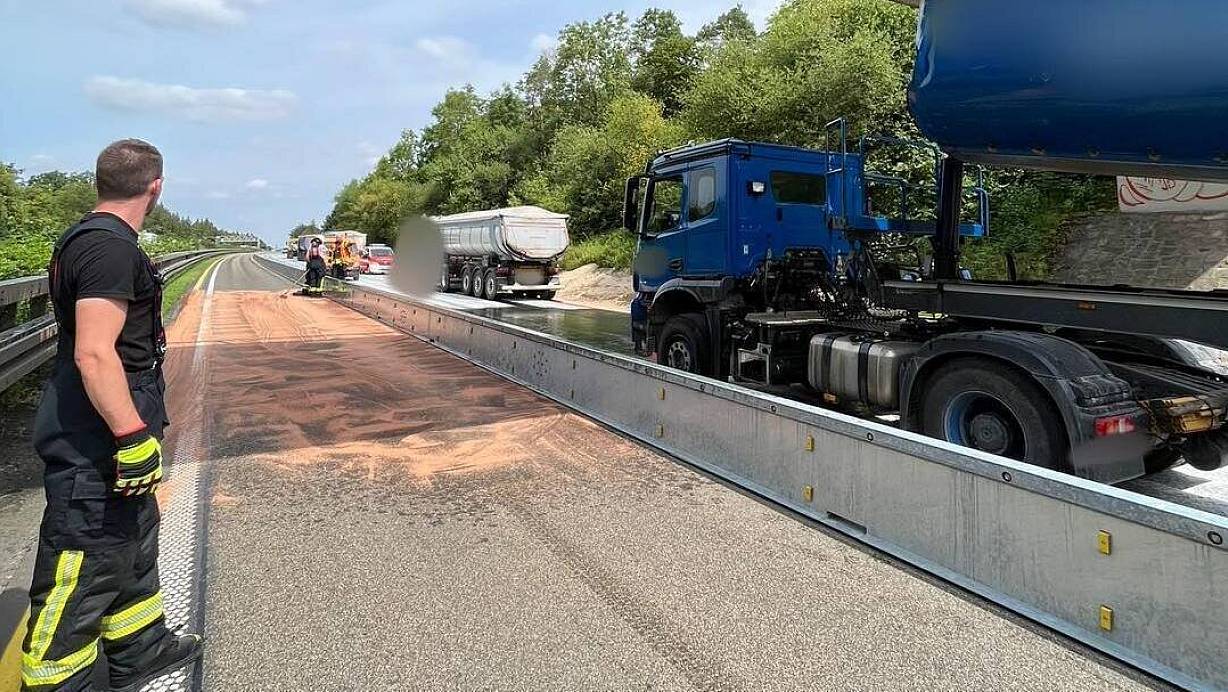 Die Feuerwehr Breuna meldet auf ihrem Social-Media-Kanal, es sei zu einer großflächigen Verunreinigung der Fahrbahn durch herausspritzendes Hydrauliköl gekommen. Auch ein anderes Baustellenfahrzeug sowie ein vorbeifahrender Pkw wurden davon getroffen.