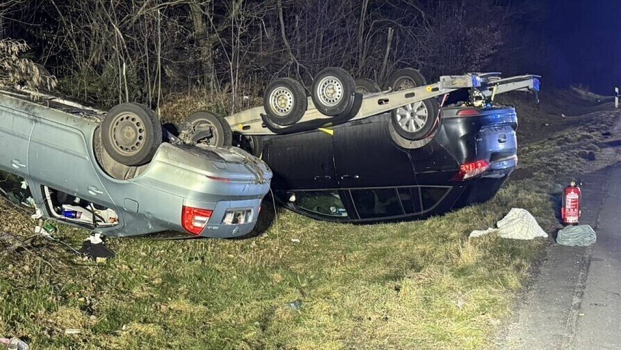 Gegen 20.15 Uhr hatte am Sonntag die Leitstelle Meschede die Feuerwehren aus Meerhof, Oesdorf, Essentho sowie den Löschzug Marsberg alarmiert. „Ebenso wie den Notarzt und drei Rettungswagen“, berichtet Ralph Pohle von der Marsberger Feuerwehr. Ein mit vier Personen besetzter Pkw mit Anhänger war aus bislang ungeklärter Ursache ins Schleudern geraten und hatte sich überschlagen. „Bei dem Unfall riss der Anhänger vom Zugfahrzeug ab und überschlug sich ebenfalls“, meldet Pohle. Fahrzeug und der mit einem Auto beladene Anhänger blieben auf dem Dach neben der Fahrbahn liegen.