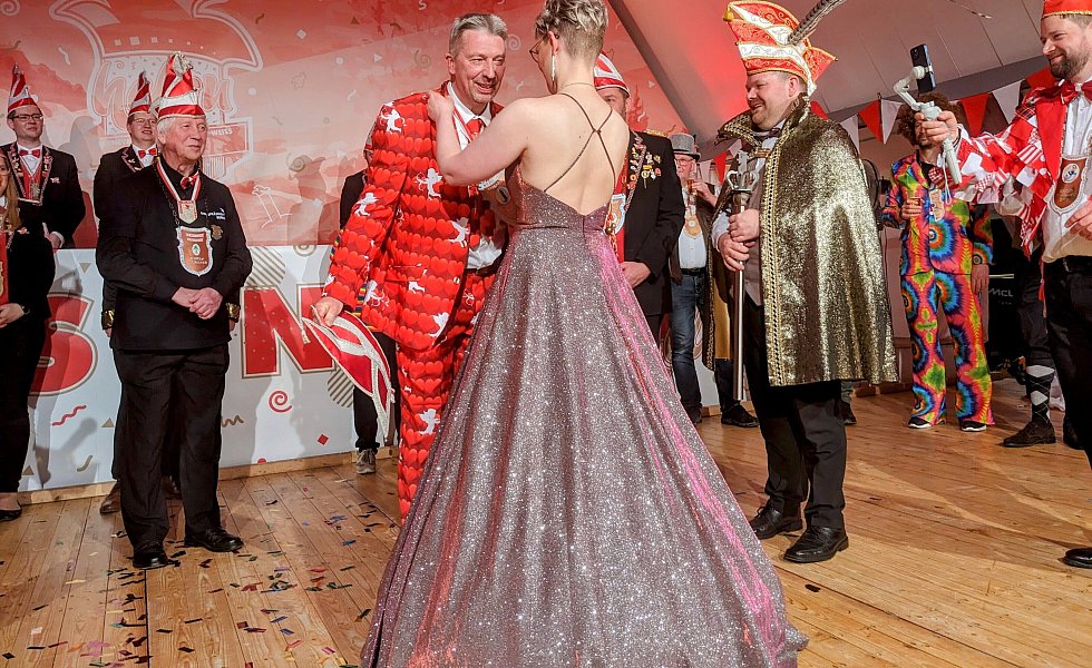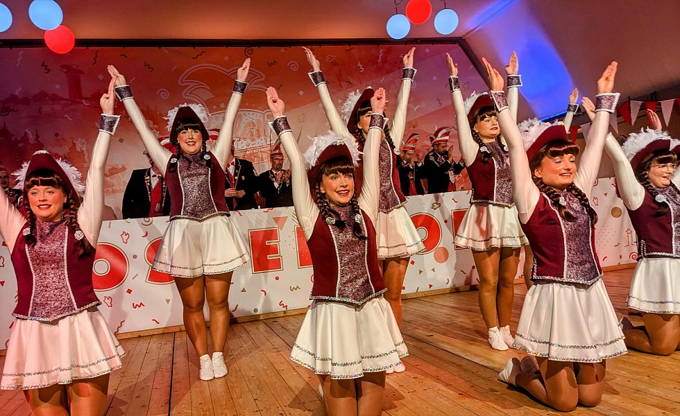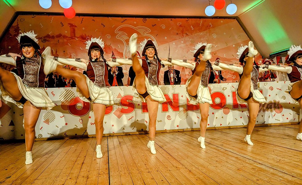 Für tänzerische Einlagen sorgten Fünkchen mit ihrem Gardetanz und die Juniorgarde. Höhepunkt war der Auftritt, der seit 18 Jahren bestehenden Formation der Tanzsportgarde. Die neun jungen Damen sorgten mit ihren Garde- und Showtänzen für laute Begeisterungsstürme in der viel zu kleinen Heinberghalle.