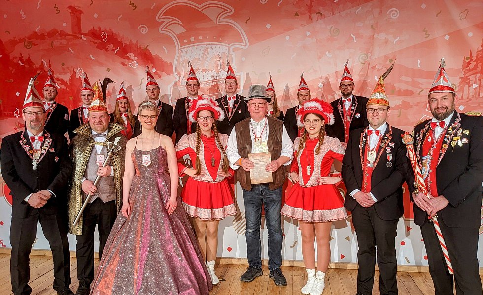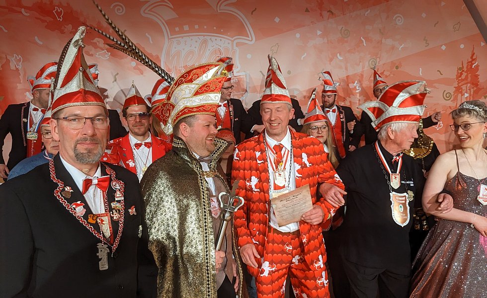 Als aber dann das Datum genannt wurde, fiel es ihm wie Schuppen von den Augen. Auf der Bühne war auch Vater und Karnevals-Ehrenpräsident Bernd Overbeck, der als Hobby-Restaurator seit Jahrzehnten die Orden der Karnevalsgesellschaft gestaltet. Auch er hatte keine Ahnung, als er eine Polizeisirene auf den Orden malen sollte.