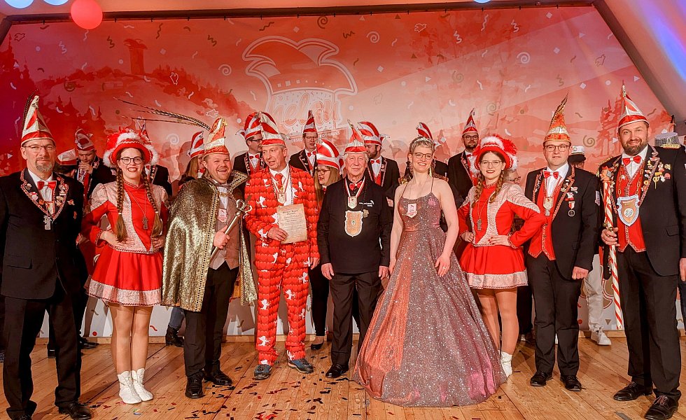 Aber auch positives Engagement wird gewürdigt. So wurde der frühere Schützenvereinsvorsitzende Heiner Geilhorn (60) für sein jahrzehntelanges Wirken in vielen Vereinen und zum Wohl des Dorfes mit dem Hausorden der Karnevalsgesellschaft Rot Weiß Ossendorf ausgezeichnet.