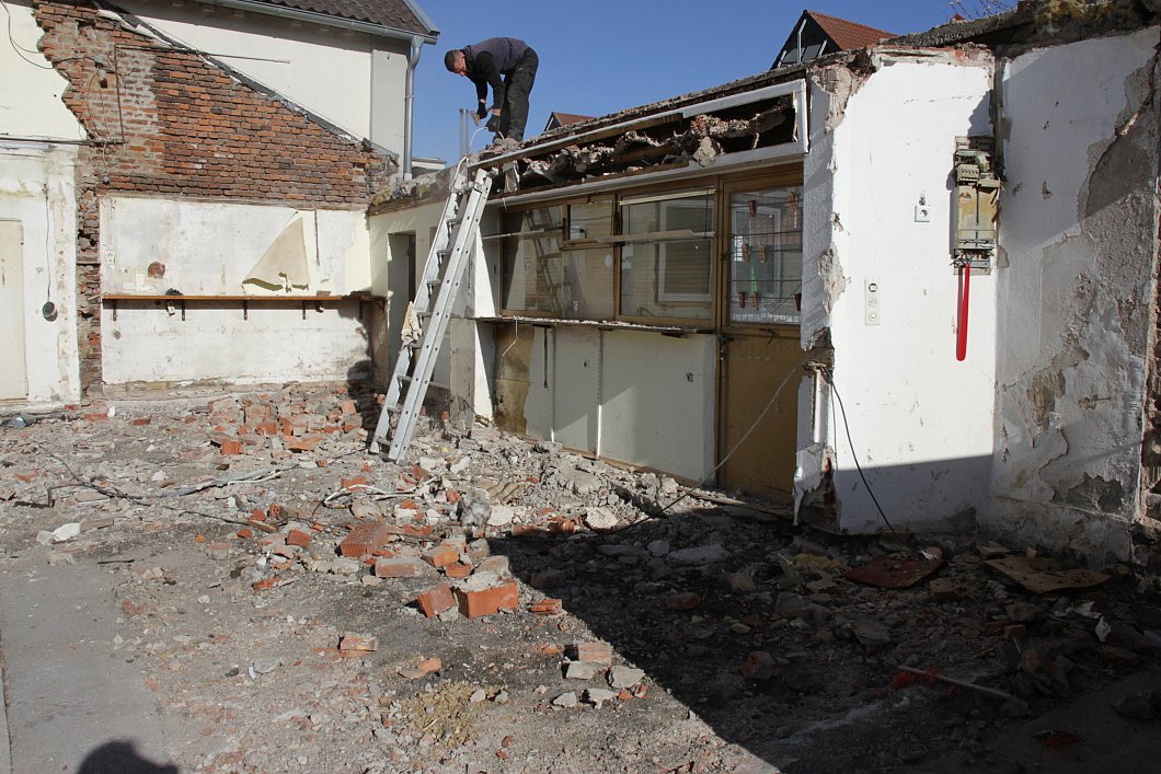 Am Gehweg bleibe vorerst die Fassade des Büdchens stehen, sagt der Investor. Wie es hinter der Mauer und den Steinen auf dem rund 1.850 Quadratmeter großen Areal weitergehe, sei noch in Planung, sagt der neue Eigentümer.