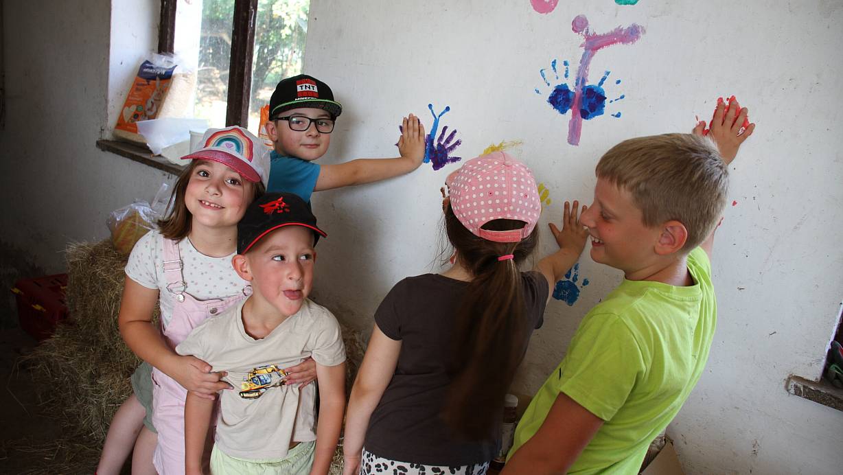 Lieben Abenteuer und lernen, Verantwortung zu übernehmen: Lina (v. l.), Paul, Phil, Leona und Leon malen die Wand an. | © Dieter Scholz
