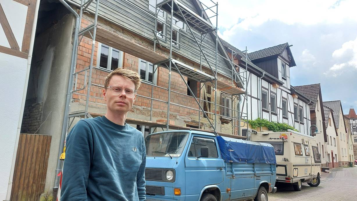 Der Leipziger Architekt Leon Sandten, ein gebürtiger Warburger, saniert an der Stadtmauer in der Altstadt ein altes Fachwerkhaus. Das kleine Wohngebäude aus dem Beginn des 18. Jahrhunderts wurde mehrfach umgebaut. Die Bausubstanz marode, sollte es abgerissen werden. Sandtens Eltern entdeckten das Haus, der Sohn bringt Know-how und Ideen mit. | © DIeter Scholz