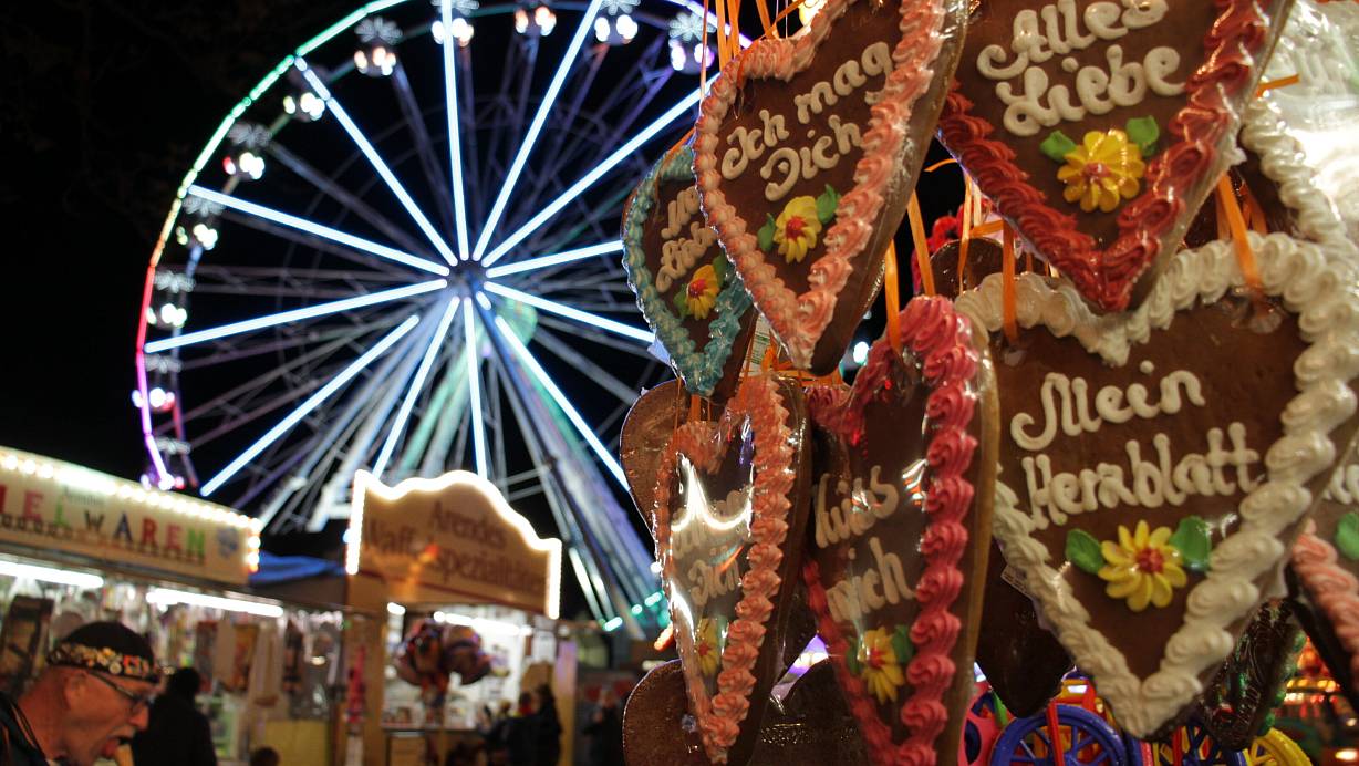 Das Riesenrad als Wahrzeichen, das Lebkuchenherz als Kirmes-Klassiker: Die süße Leckerei gibt es in unterschiedlichen Größen. | © Dieter Scholz