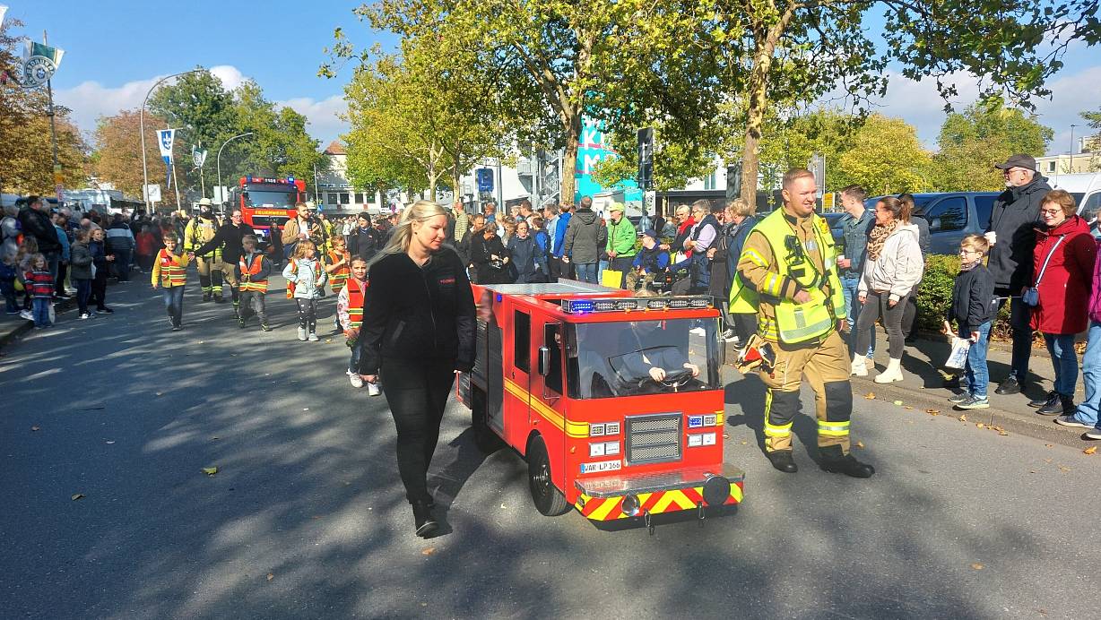 Ein Mini-Feuerwehrauto begeistert im Festzug der Warburger Oktoberwoche. In unzähligen Stunden von einem Hauptbrandmeister entworfen und gebaut. Wie sein Vater möchte er das Feuerwehr-Gen weitergeben.