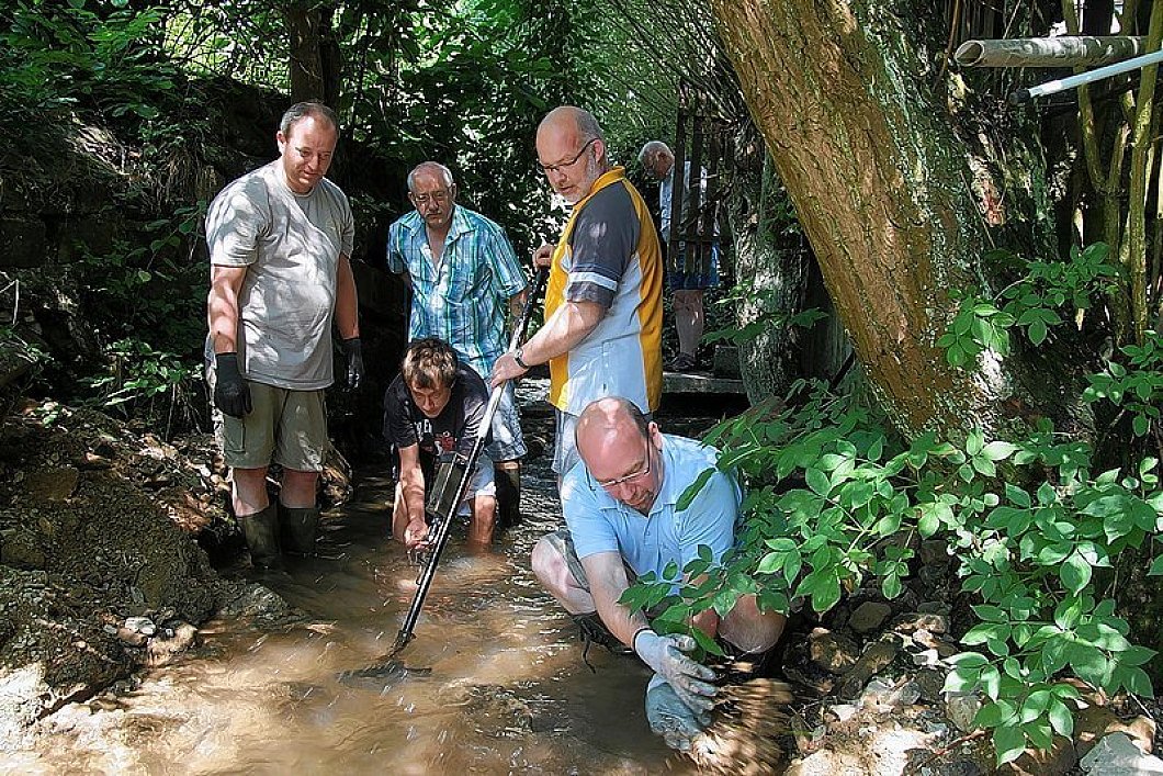 Vier Mitglieder des Heimatschutzvereins haben am Samstagvormittag den Hellbach noch einmal genau unter die Lupe genommen - unterstützt von einem Minensuchgerät, das Friedhelm Giefers mitgebracht hatte. "Einen weiteren Orden und ein Emblem eines Ordens haben wir entdeckt", berichtet Frank Schneider, zweiter Zugoffizier der Unterdorfkompanie. "Da entstand schon Euphorie, das war wirklich ein Erfolgserlebnis", so Schneider.