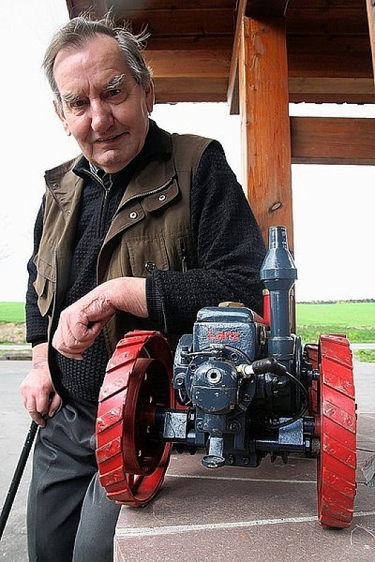 40 Jahre lang hat Alois Vandiken Landmaschinen gefahren. Mit 58 Jahren trat er in den Vorruhestand. Bereits zwei Jahre früher begann das Tüftlerherz in Vandikens Brust zur schlagen. "1982 habe ich angefangen zu werken und zu basteln", erzählt der Jubilar. Sein ersten Werke: Eine Drehmaschine aus Holz sowie ein Dreirad für den Enkelsohn Sven. Damit begann die Leidenschaft für den Modellbau. Besonderen Wert legt der Rekreateur alter Technikklassiker darauf, dass auch die Modelle funktionieren. So wie auch der größte Pflug der Welt: der Ottomeyer-"Mammut"-Pflug.