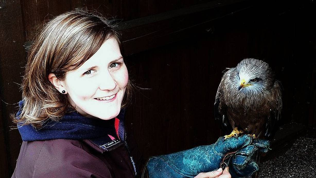 Mit viel Gefühl setzt sie die Eule auf eine schmale Holzstange, die Teil einer speziellen Vogel-Waage ist. "Es ist wichtig zu wissen, wie schwer oder leicht die Tiere sind. Die Futterrationen werden danach berechnet. Wenn die Vögel zu schwer sind, werden sie träge und fliegen nicht", erklärt Ronja (20) der Nachwuchs-Falknerin.