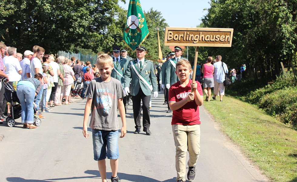 Zusammenhalt wird in Borlinghausen groß geschrieben. "Ich möchte mich bei allen Helfern bedanken, die seit mehr als einem Jahr auf dieses Wochenende hingearbeitet haben", sagte Schützenchef Tobias Küting auf dem Sportplatz. Das Dorf sei enorm zusammengerückt und jeder habe dort geholfen, wo er konnte, lobte der Vorsitzende des Schützenvereins.