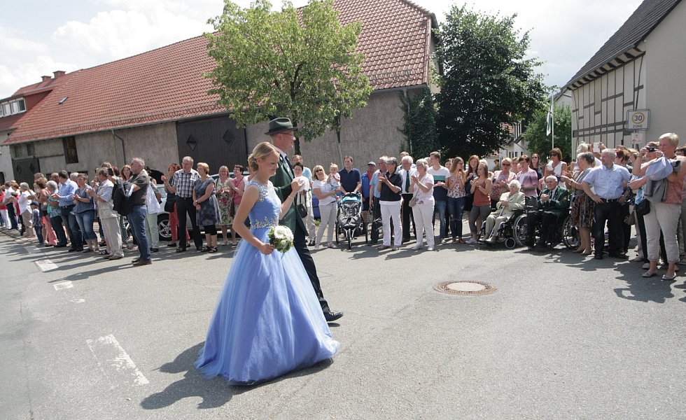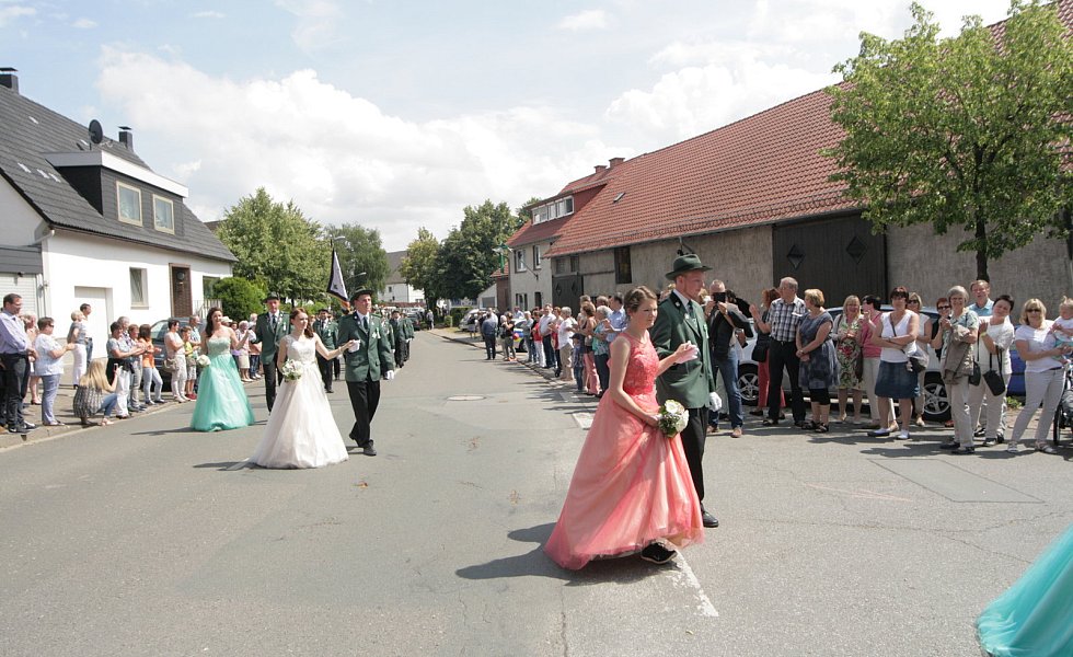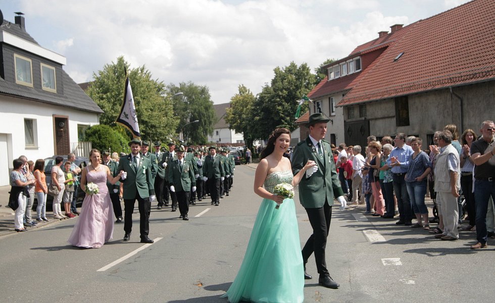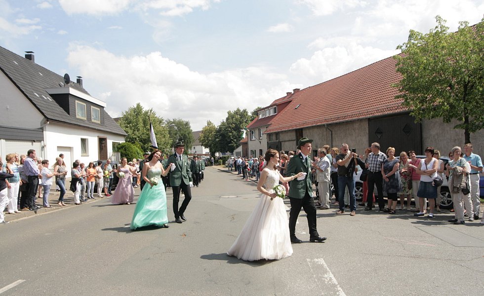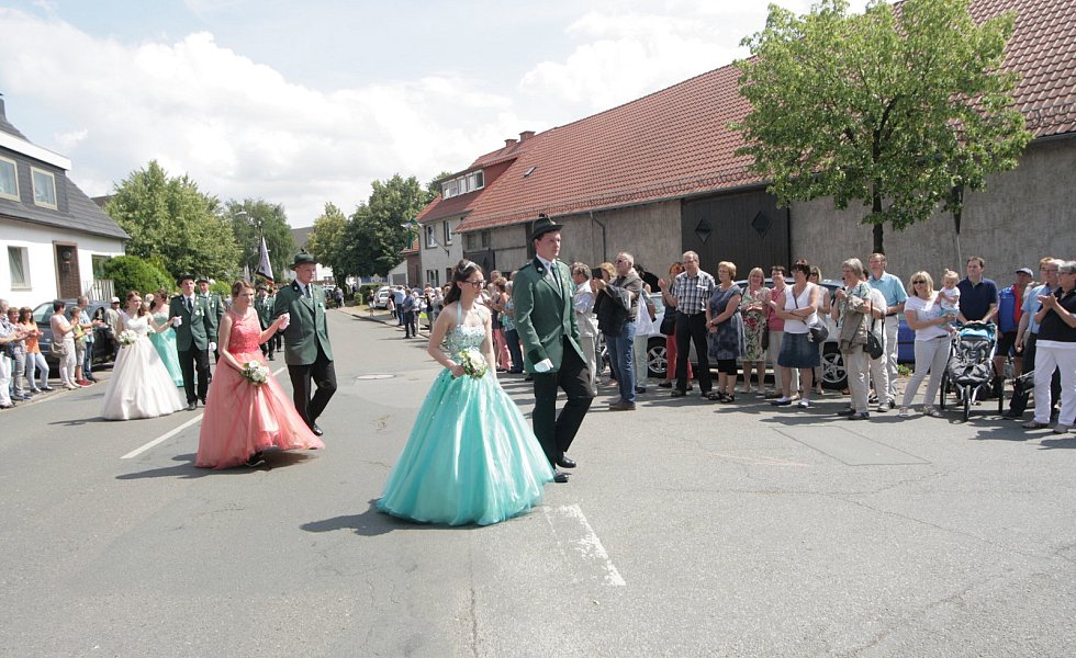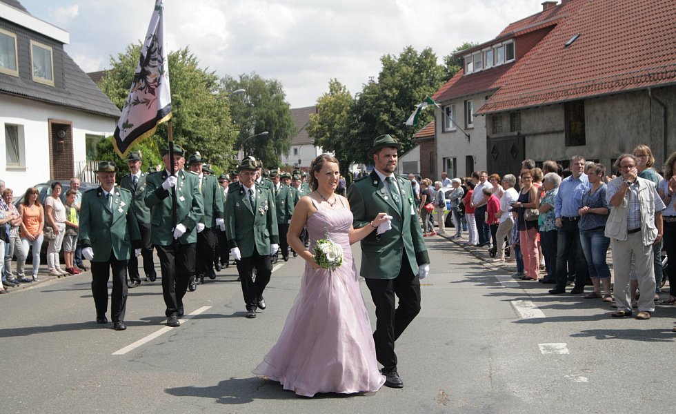 Auch der Hofstaat bezauberte das Eissener Publikum, das die Straßen säumte: Dominic Wiemers und Pia Rehage, Henrik Sievers und Sandra Deneke, Johannes Becker und Christina Bosser, Marius Röhl und Hanna Schafmeister, Carsten Uhe und Katharina Sanke sowie Jakoc Wiemers und Clara Deppe. Mit einem Spalier bis zur Hüssenberghalle endete der Umzug und es wurde bis tief in die Nacht gefeiert.