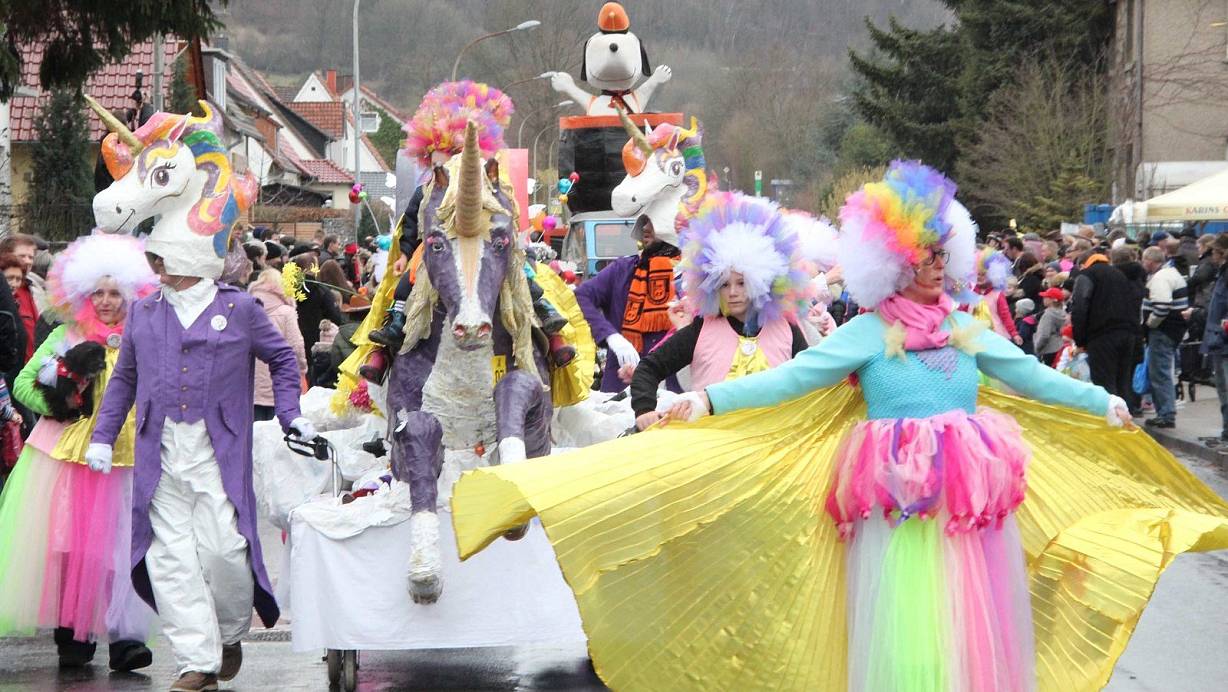 Fantasievoll: Die Einhornparade ist ein Hingucker im Willebadessener Karnevalsumzug. | © Burkhard Battran