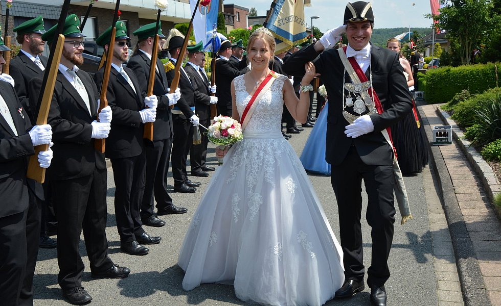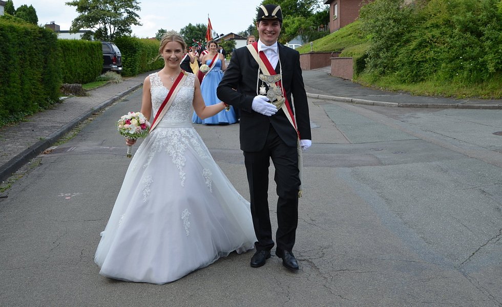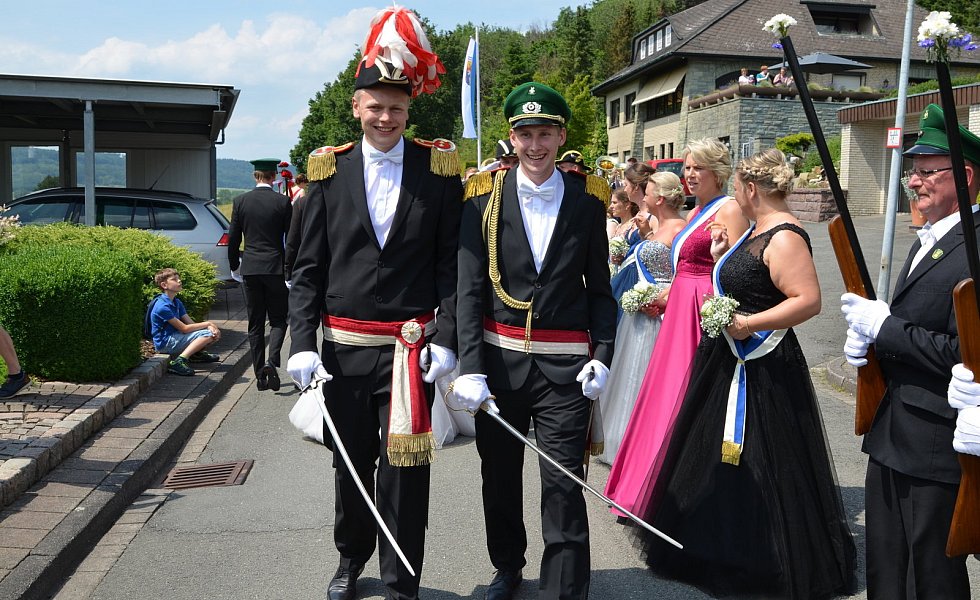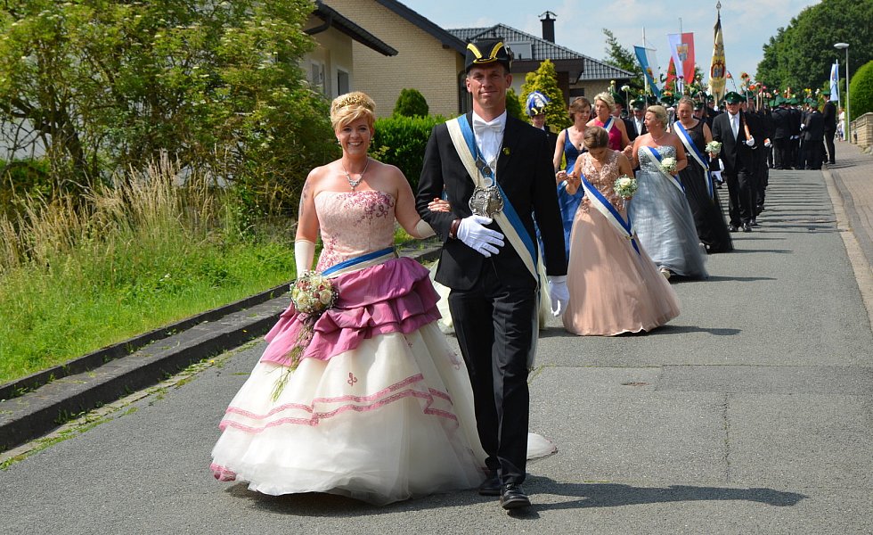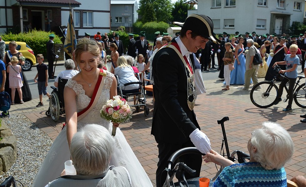 Im Eggestädtchen regieren zum Schützenfest gleich zwei Könige mit ihren Hofstaaten. Die Regentenpaare der Jungschützen von St. Johannes und der Schützenbrüder von St. Sebastian werden vom Festzug abgeholt. Dadurch ergeben sich mitunter lange Wegstrecken. Diesmal ging es bis zur Helle, dem höchsten Punkt Willebadessens. Dort wurden die Majestäten der St.-Johannes-Schützen, Volker Kröger und seine Königin Sophia Peine, mit ihren Hofstaatsdamen von den Bruderschaften abgeholt. Zum Hofstaat gehören: Oberst Dominik Hesselmann und Stefanie Ernst, Adjutant Philipp Brinkmann und Nadine Hesselmann, Königsoffizier Lukas Mettig und Romana Geiser, Fahnenoffizier Mike Hüpping und Vanessa Ernst, Fähnrich Marius Ewers und Anna Müller sowie Schäffer Marius Brinkmann und Carolin Peine.