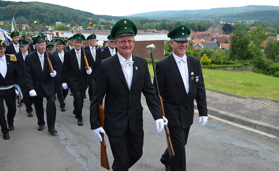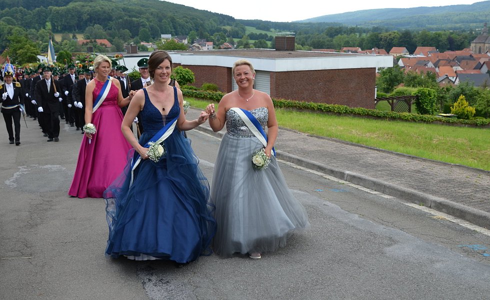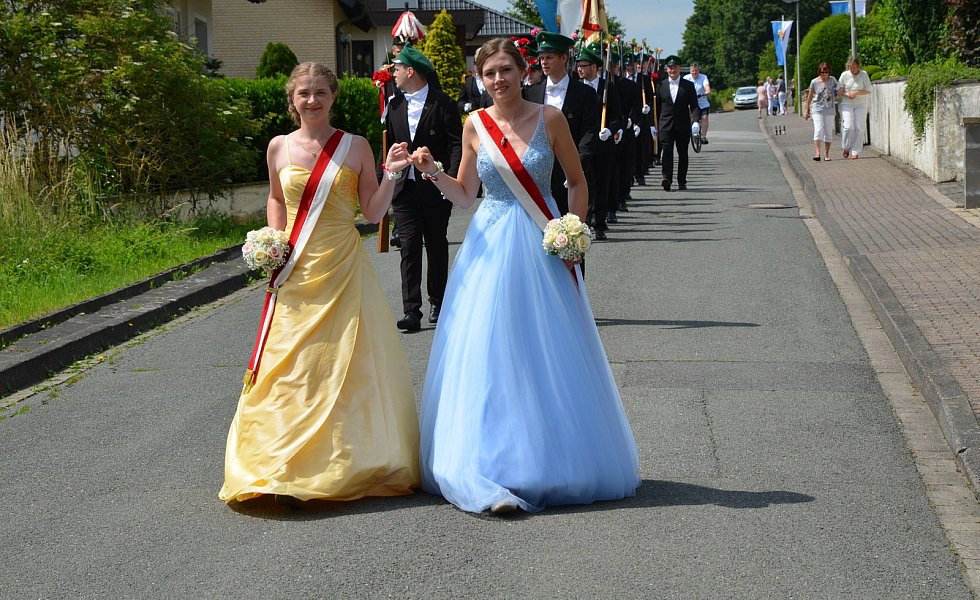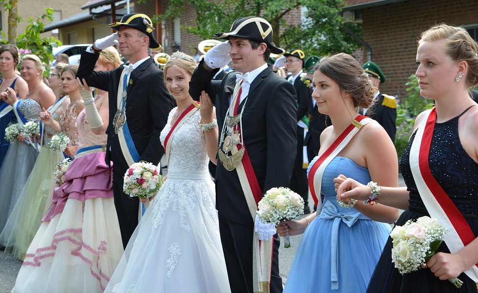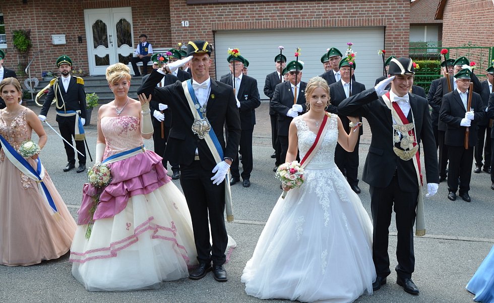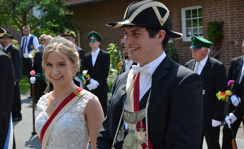 Im Eggestädtchen regieren zum Schützenfest gleich zwei Könige mit ihren Hofstaaten. Die Regentenpaare der Jungschützen von St. Johannes und der Schützenbrüder von St. Sebastian werden vom Festzug abgeholt. Dadurch ergeben sich mitunter lange Wegstrecken. Diesmal ging es bis zur Helle, dem höchsten Punkt Willebadessens. Dort wurden die Majestäten der St.-Johannes-Schützen, Volker Kröger und seine Königin Sophia Peine, mit ihren Hofstaatsdamen von den Bruderschaften abgeholt. Zum Hofstaat gehören: Oberst Dominik Hesselmann und Stefanie Ernst, Adjutant Philipp Brinkmann und Nadine Hesselmann, Königsoffizier Lukas Mettig und Romana Geiser, Fahnenoffizier Mike Hüpping und Vanessa Ernst, Fähnrich Marius Ewers und Anna Müller sowie Schäffer Marius Brinkmann und Carolin Peine.