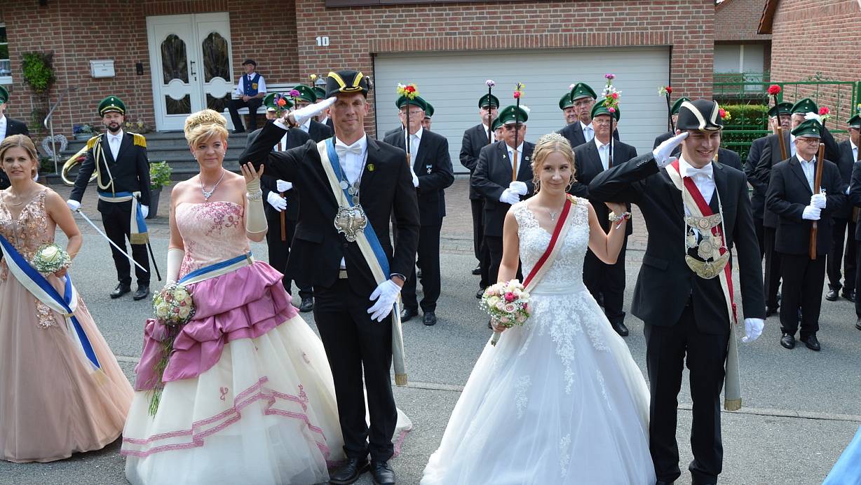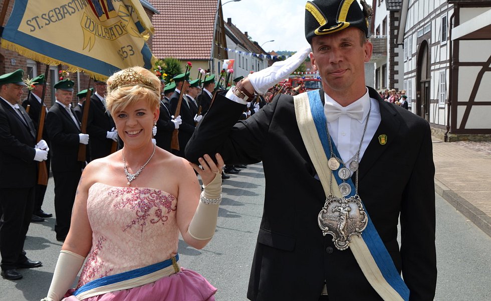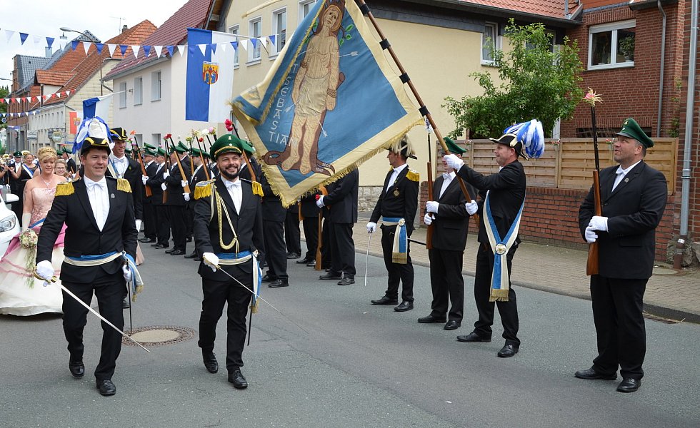 König der Schützenbruderschaft St. Sebastian ist in diesem Jahr Sascha Baumann. Ihm zur Seite steht Ehefrau Tanja. Zu ihrem Hofstaat gehören: Oberst Mario Schmidt mit Ehefrau Alexandra, Schäffer Andreas Wiegand mit Gattin Tatjana, Fahnenoffizier Lars Becker mit Ehefrau Nadine, Königsoffizier Johannes Diekmann mit Ehefrau Natalja, Fähnrich Thomas Schlitt mit Ehefrau Kerstin und Adjutant Stefan Berendes mit Gattin Monika.