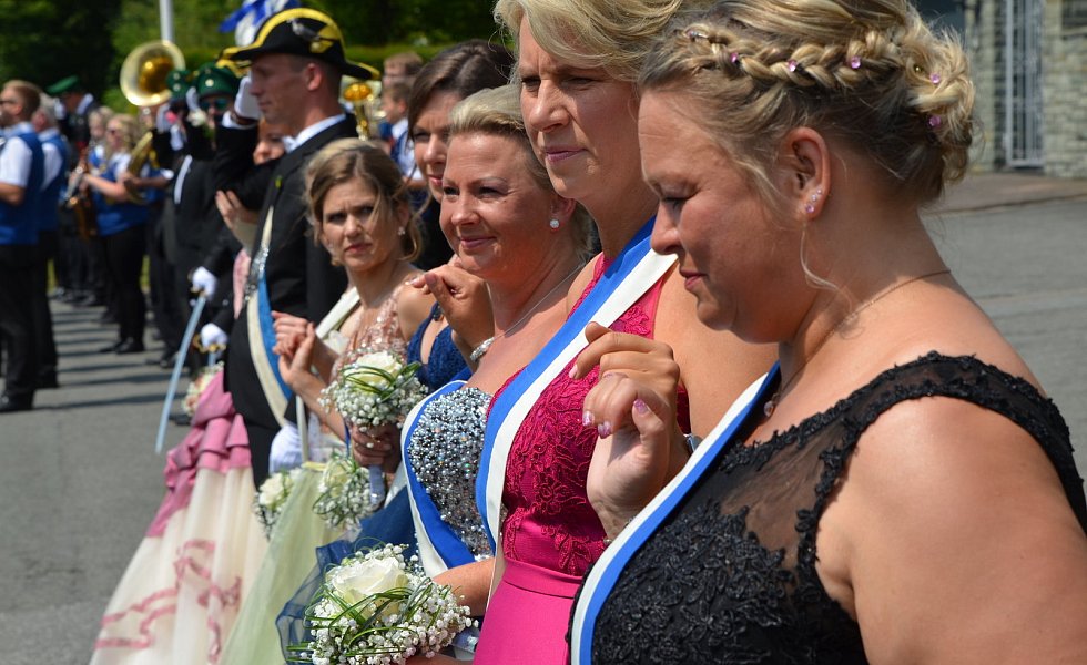 Willebadessen. Wetterhoch „Ulla" sorgte zum Schützenfest in Willebadessen für strahlenden Sonnenschein und ein Fest nach Maß. Die Hofdamen der beiden Schützenbruderschaften St. Johannes und St. Sebastian dürfte es gefreut haben: Ihre attraktiven Festtagskleider kamen im strahlenden Sonnenschein bestens zur Geltung. Die zahlreichen Besucher an der Wegstrecke wussten dies mit jeder Menge Beifall zu würdigen. Die schwarzen Anzüge der Schützen hingegen mussten so manche Schweißperle aufsaugen.