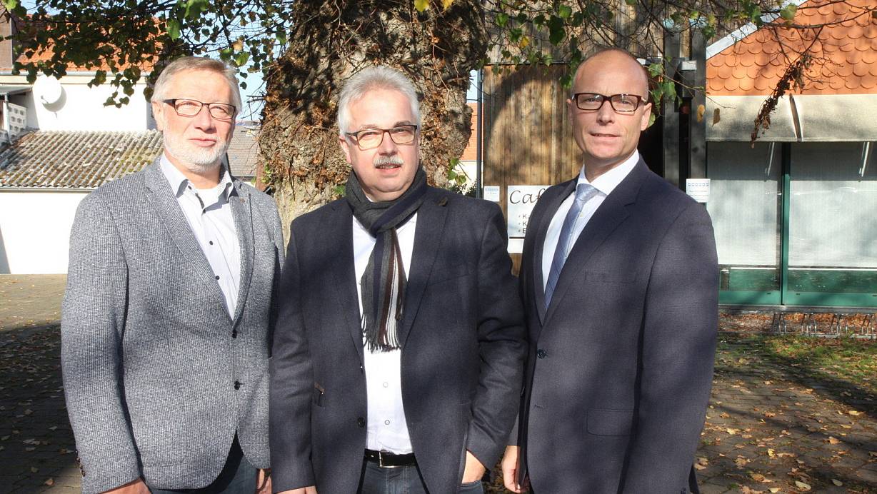 Kandidatenkür in Willebadessen: Norbert Hofnagel (m.), Fraktionsvorsitzender Hubert Gockeln (l.) und Stadtverbandschef Heiko Hansmann (r.). | © Hermann Ludwig