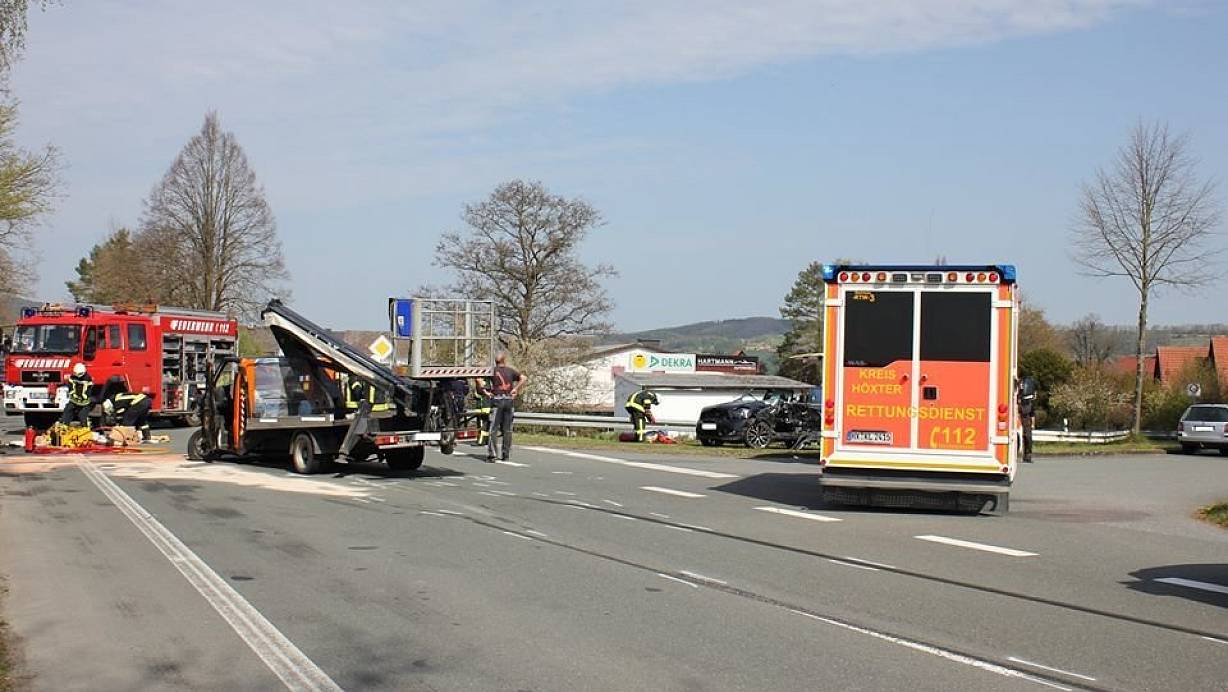 An der Einmündung Borlinghauser Straße wollte nach Polizeiangaben eine 41-Jährige aus Willebadessen mit ihrem BMW Mini offenbar nach links Richtung Borlinghausen einbiegen und wartete an der Haltelinie.