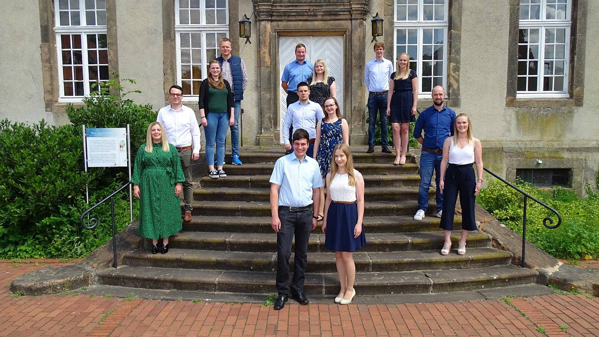 Zum royalen Gefolge gehören Königsoffizier Lukas Mettig mit Romana Geiser, Oberst Andre Hillebrand mit Madlen Bredewald, Adjutant Alexander Lüke mit Daniela Hüpping, Fahnenoffizier Tobias Jeziorek mit Sophia Krelaus, Fähnrich Dennis Schobert mit Laura Gell und Schäffer Marc Rustemeyer mit Iris Rais.
